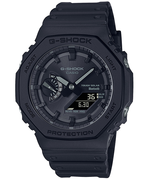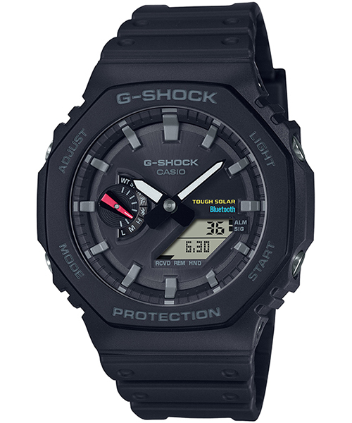 初代G-SHOCKのデザインコンセプトを受け継いだGA-2100の八角形フォルムはそのままに、スマートフォンリンクとタフソーラーを搭載しました。