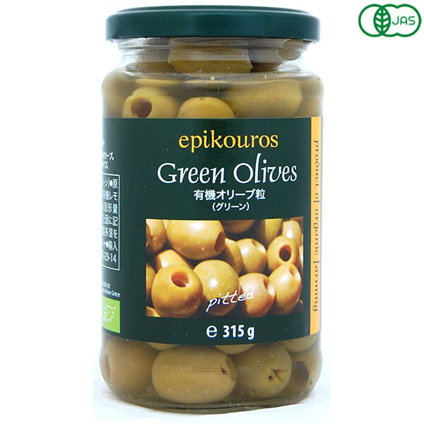 【3/16(月)9:59迄!ポイント5%+日曜5%】オリーブ グリーンオリーブ 種なし エピクロス 有機オリーブ粒(グリーン)315g