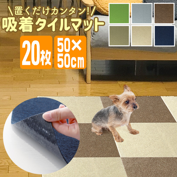 ジョイントマット 吸着タイル 大判 50×50cm 20枚 単色 選べる6色 洗える ジョイント マット 犬 猫 ペット 赤ちゃん マット タイルマット カーペット フロアマット プレイマット 防音 送料無料