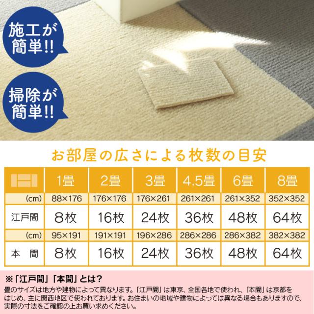 部屋のスペースに合わせて自由に組み合わせて敷くことができ