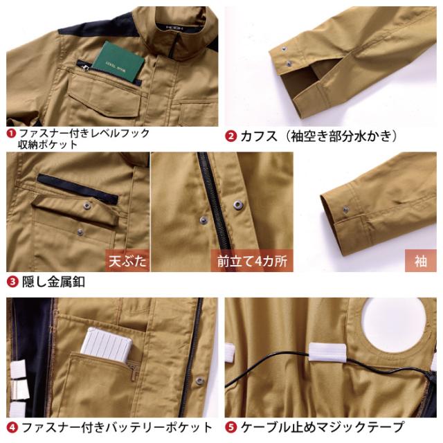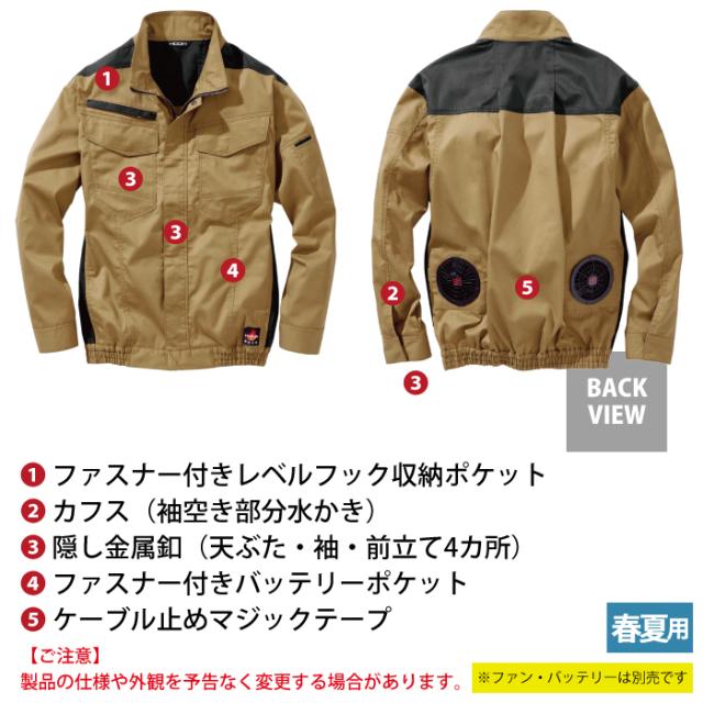 ◇機能:ファスナー付きレベルブック収納ポケット・カフス(袖空き部分水かき)・隠し金属釦(天ぶた・袖・前立て4ヶ所)・ファスナー付きバッテリーポケット・ケーブル止めマジックテープ