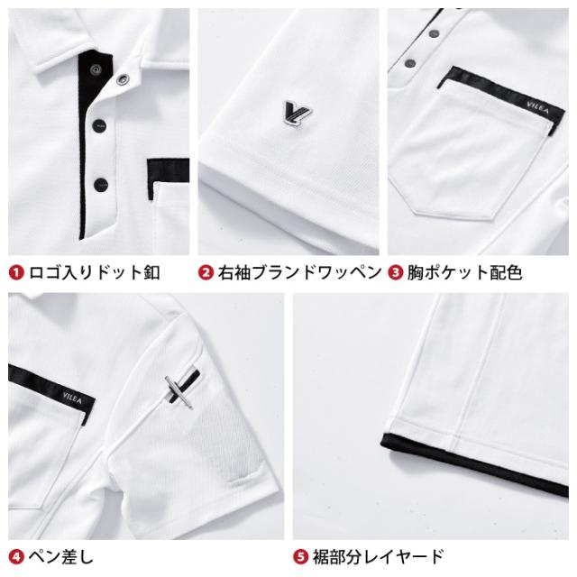 ◇機能:ロゴ入りドット釦・右袖ブランドワッペン・胸ポケット配色・ペン差し・裾部分レイヤード
