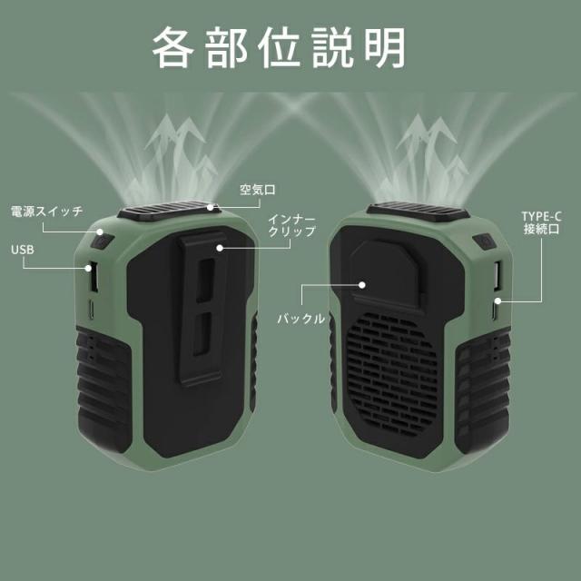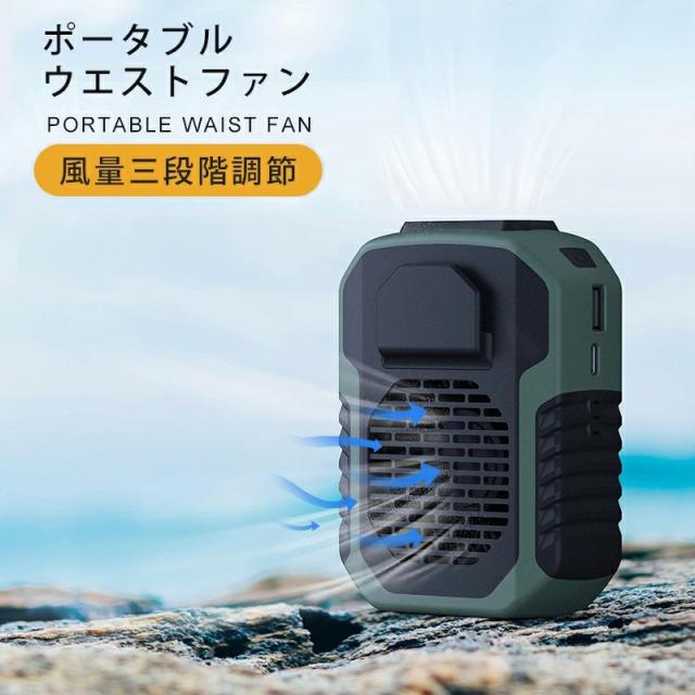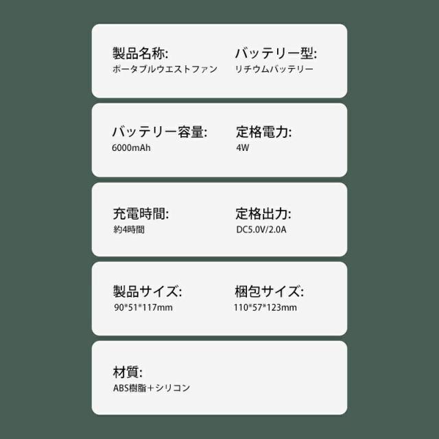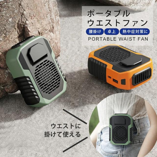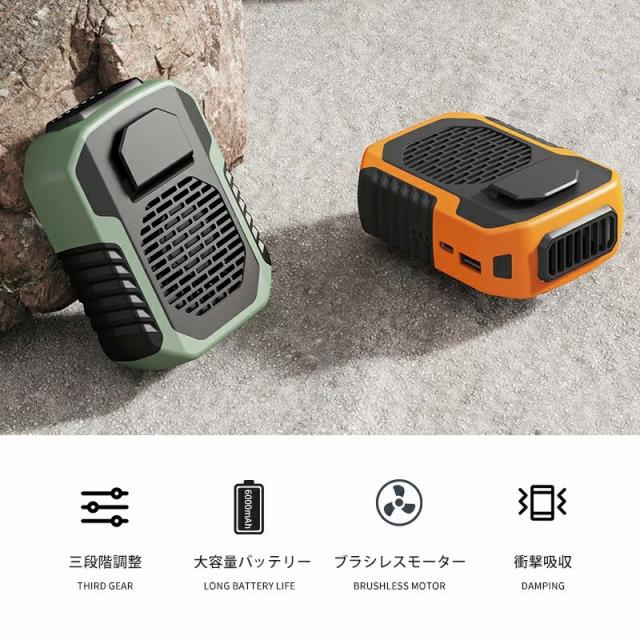 ミニ扇風機 扇風機 ファン 引っ掛け式 服の中 ひっかけ ウエスト 腰 腰掛け デスク 置き型 バッテリー 6000mAh USB 充電 大容量