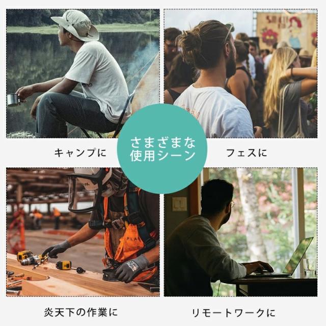 炎天下の作業や、フェスやアウトドアにはもちろん、オフィスやリモートワーク中のデスクに置いても◎。