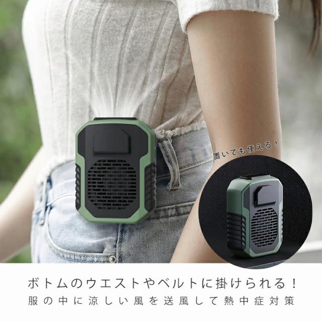 ウエストに引っ掛け服の中に送風!クリップ付きミニ扇風機