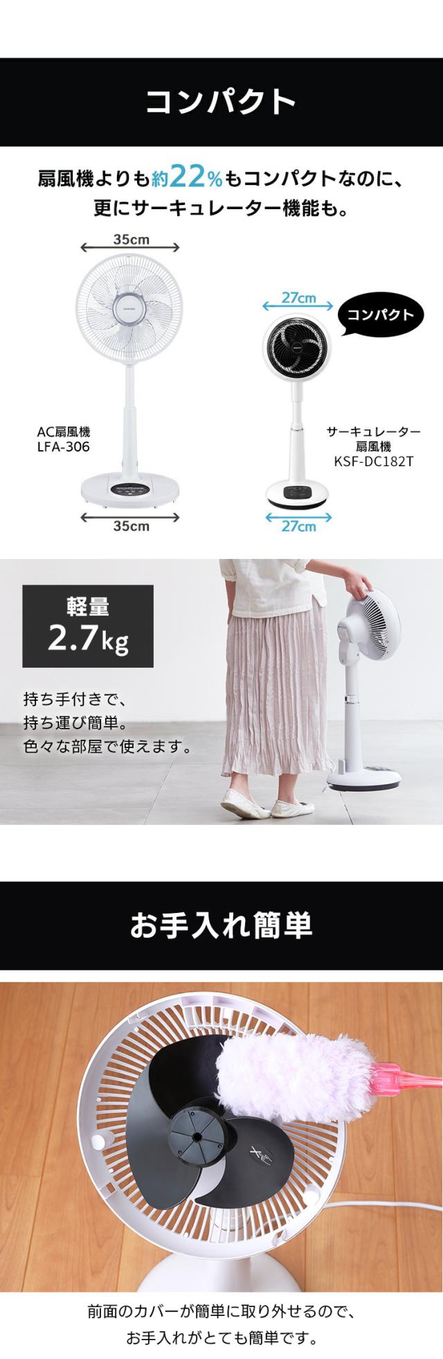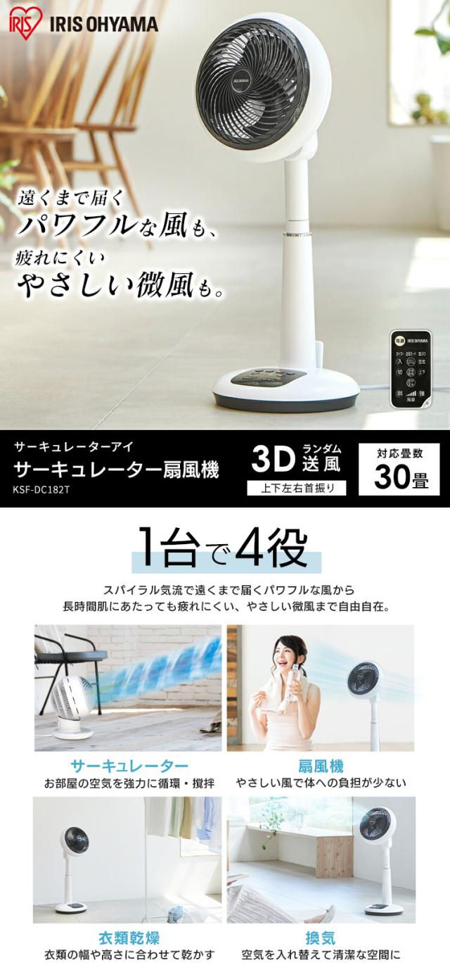 サーキュレーター 扇風機 サーキュレーター扇風機 アイリスオーヤマ 30畳 サーキュレーター扇風機 KSF-DC182T-W ホワイト 梅雨 部屋干し サーキュレーター 扇風機 衣類乾燥 換気 衣類乾燥 上下左右首振り 省エネ パワフル 静音 リモコン付 タイマー 送風 空気循環 送料無料