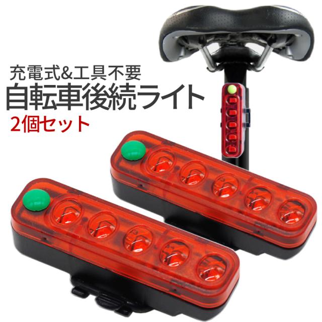 自転車 LED ライト バックライト 2個 点灯 点滅 USB 充電 サドル 小型 通勤 通学 夜間 警告 後続 後続車 テールライト テールランプ サイクリング 警告灯 工具 不要 2-SINJITERA 送料無料