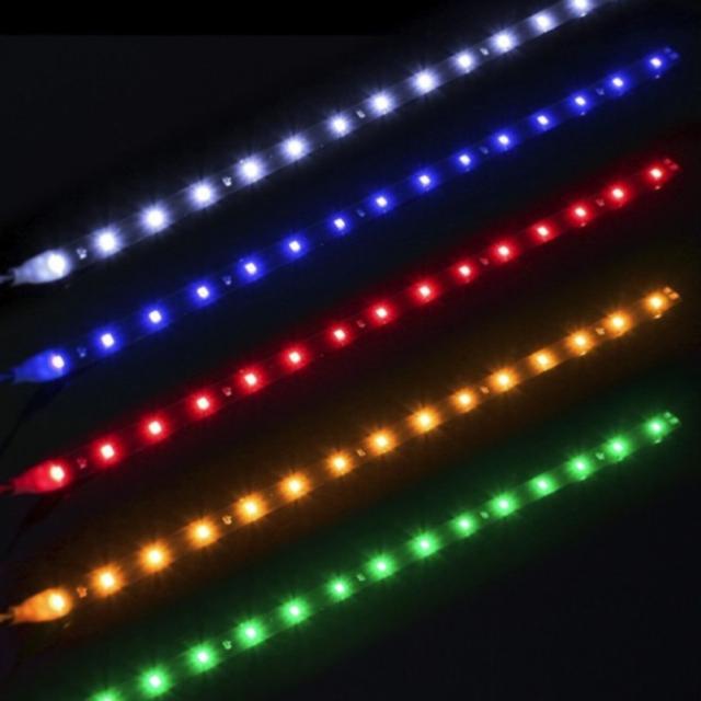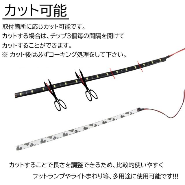 2本 LEDテープ 15LED 30cm 正面発光 LEDテープ ホワイト/ブルー/アイスブルー/アンバー/レッド/グリーン/ピンク 黒ベース 防水 切断可能 折り曲げ可能
