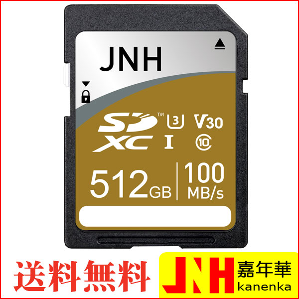 SDカード SDXCカード 512GB JNHブランド R:100MB/s Class10 UHS-I U3 V30対応 4K Ultra HD 国内正規品3年保証 パッケージ品 送料無料 ポイント消化
