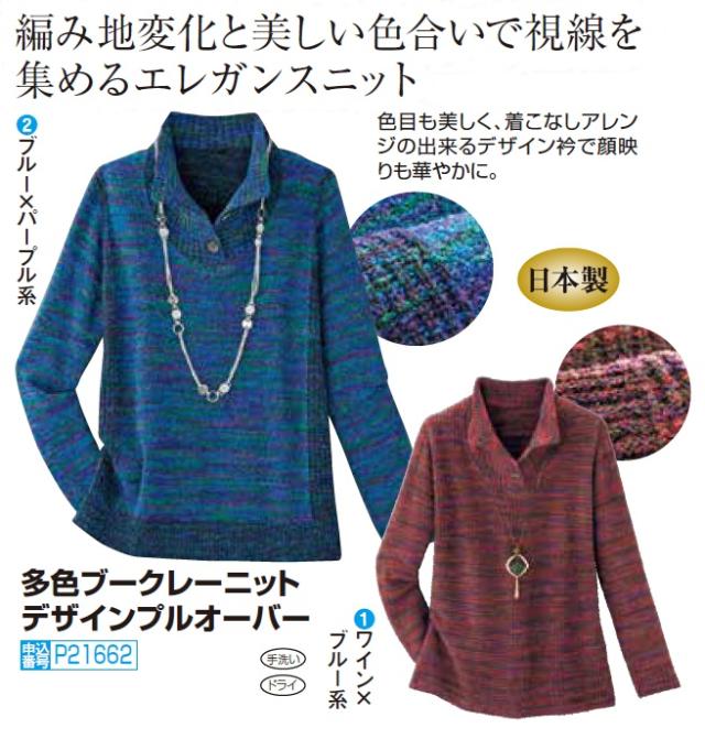 セーター ニット レディース ブルー 日本製 多色ブークレーニット デザインプルオーバー 青 婦人服 ミセス シニア トップス 襟付き スタンドカラー シニアファッション 40代 50代 60代 70代 80代 母の日 お母さん おばあちゃん 秋冬 nss p17440 p21662 p24809