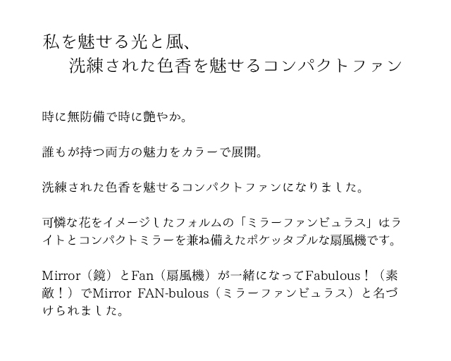 時に無防備で時に艶やか。洗練された色香を魅せるコンパクトファン。