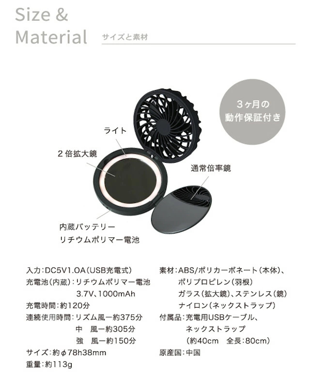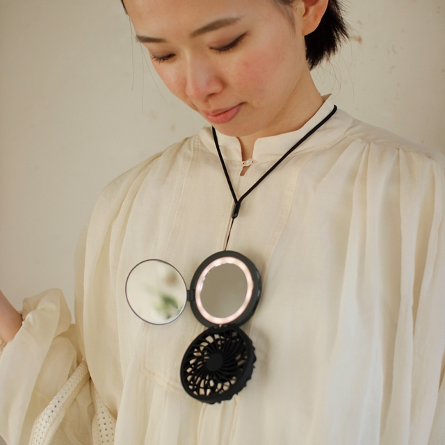 【SPICE OF LIFE】ミラーファンビュラス DFCP226【ノワール ブラン コンパクトミラー LED リングライト USB アウトドア 首掛け ハンズフリー ファン fan 扇風機 母の日 父の日 プレゼント ギフト】