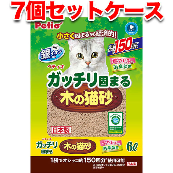 7個セット1個分お得|ペティオ ガッチリ固まる木の猫砂 6L 国産 日本製 小さく固まる 燃やせる 消臭効果あり 木粉 ベントナイト 高分子吸収体 ポリマー ペレット 小さく固まるので経済的 短毛猫 長毛猫 Petio