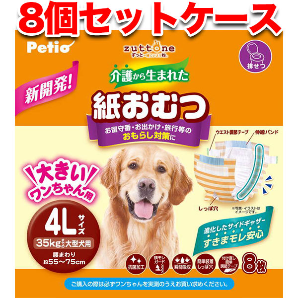 ペティオ 犬用オムツ zuttone ずっとね 介護から生まれた紙おむつ 4L 8枚×8 64枚 ケース販売 大型犬 老犬介護用おむつ Petio