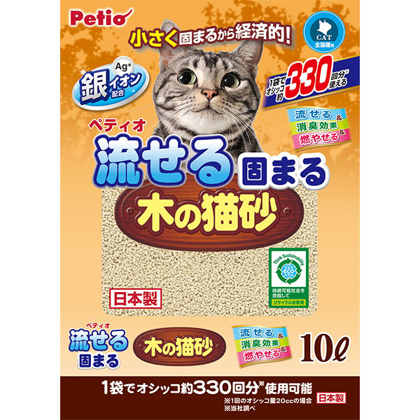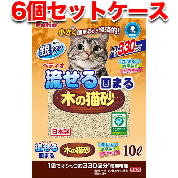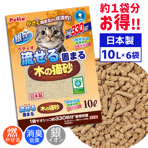6個セット1個分お得|ペティオ 流せる固まる木の猫砂 10L 国産 日本製 木製 猫 短毛 長毛 木粉 おから コーンスターチ ペレット 小さく固まるので経済的 Petio