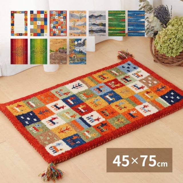玄関マット ギャッベ 屋内 45 75 風水 ウール インド ギャベ 小さい おしゃれ 大判 室内 高級感 45×75 豪華 柄 ラグ 玄関 事務所 室内用 フリンジ