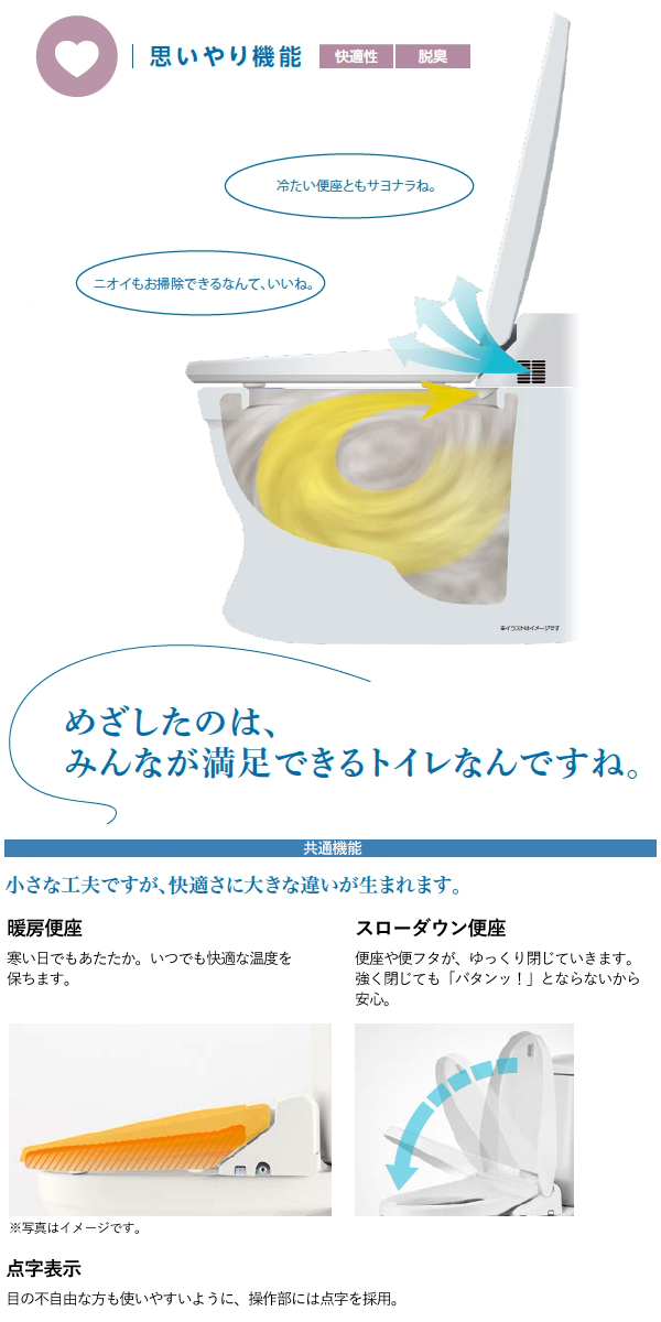 脱臭、暖房便座、使う人のことを考えた思いやり機能。