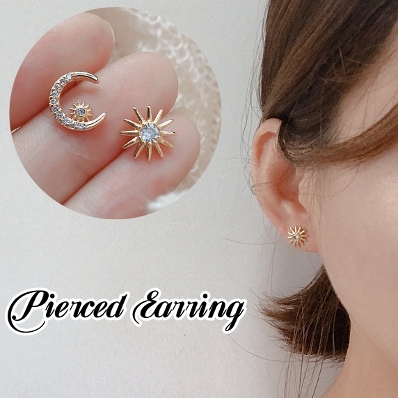 ピアス スタッドピアス アシンメトリー レディース 女性 アクセサリー 太陽 月 ラインストーン キラキラ 小さめ 小ぶり シン