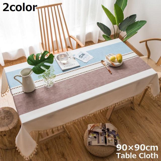 テーブルクロス 90×90cm テーブルカバー テーブルマット 食卓カバー マルチカバー 布 北欧風 シンプル タッセル リネン