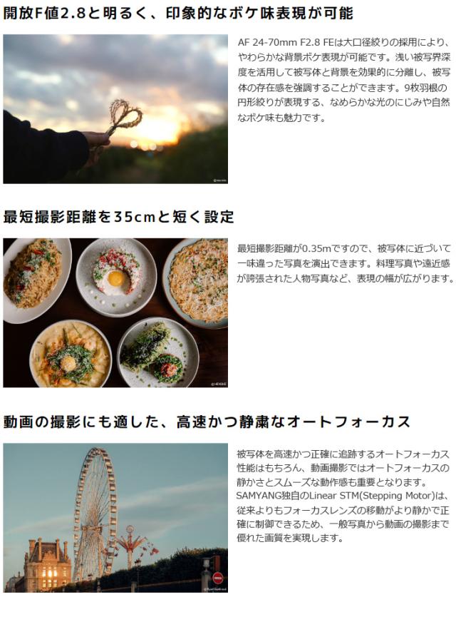【お得なセットもあります!!】 Sony E mount SAMAF24-70mmF2. 動画撮影に最適化!SAMYANG初のズームレンズ