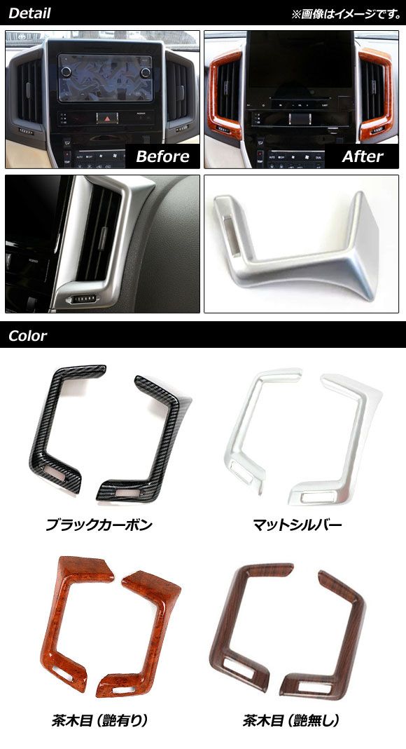 エアコンダクトカバー トヨタ ランドクルーザー 200系 後期 2015年08月〜2021年07月 茶木目 艶無し ABS樹脂製 センター用 入数:1セット(2個) AP-IT1718-MWD