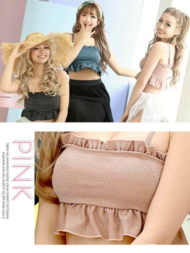 ☆ストラップが取り外し可能となっているバンドゥビキニは、全体に入ったフリルでさりげなく体型カバーしボディラインをキレイに見せてくれるビスチェ風ビキニです。