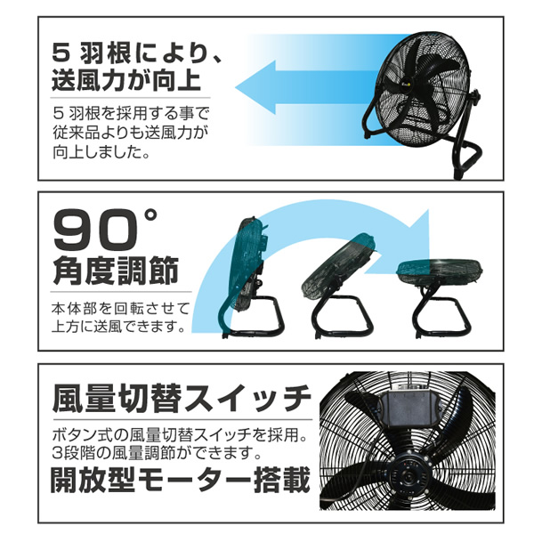 安定性の良い特別製スタンド 5枚羽根で送風が向上。 ■電源:AC100V 50/60Hz ■消費電力:約 75W ■羽根材質:ABS製(アクリロニトリル・ブタジエン・スチレン製) ■風速:約 7.1m/秒(風量”強”) ■騒音:約 70 dB(風量”中”) ■風量調節:3段階 ■コード長:約2.2m ■付属品:取扱説明書(保証書付き) ■外形寸法:幅550×奥行290×高さ520mm ■総重量:約4.6kg ※記載は商品仕様の一部です。仕様説明不足等の理由での返品はできません。特に適合等は必ずご確認ください。