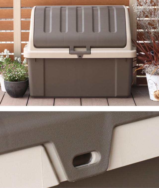 正面と後ろに市販の南京錠を付けられる鍵穴が付いているので、防犯対策もバッチリ出来ます。風が強い日などに屋外に置いていても安心です。