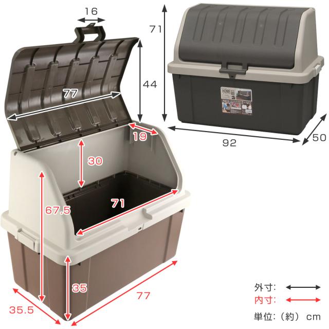 | サイズ | 約 幅92×奥行50×高さ71(cm) フタ開口部:約 幅71×奥行33×高さ26.5(cm) 最大収納質量:約 72kg |