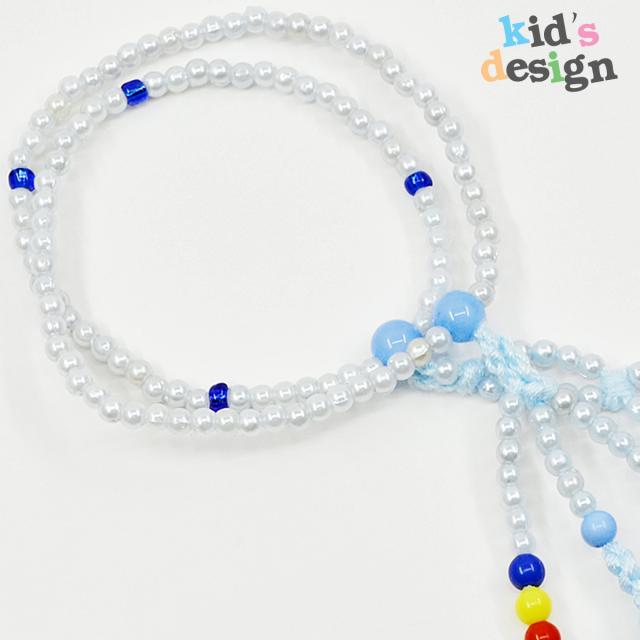 赤ちゃん用数珠 念珠 カラフル念珠 プラスチックビーズ 037 ブルー 三色入り 綿ふさ(ブルー) 創価学会用 SGI SOKA