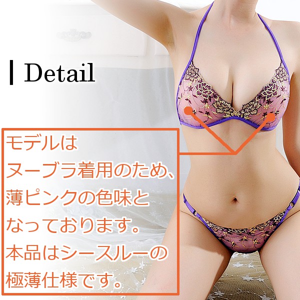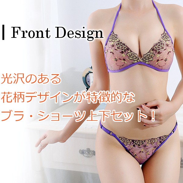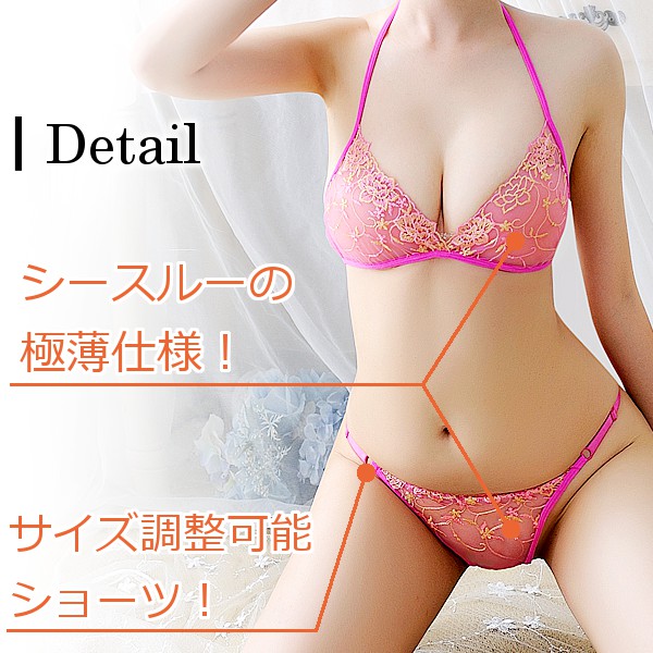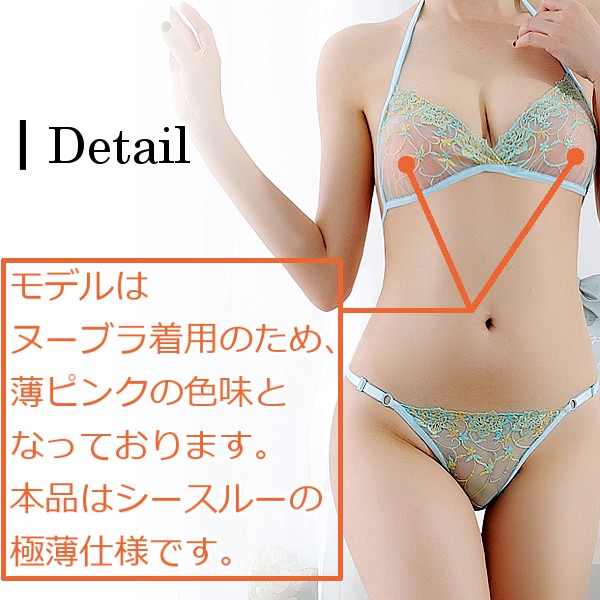 シースルーのカラーレースを基調にしたセクシーブラ&ショーツ。
