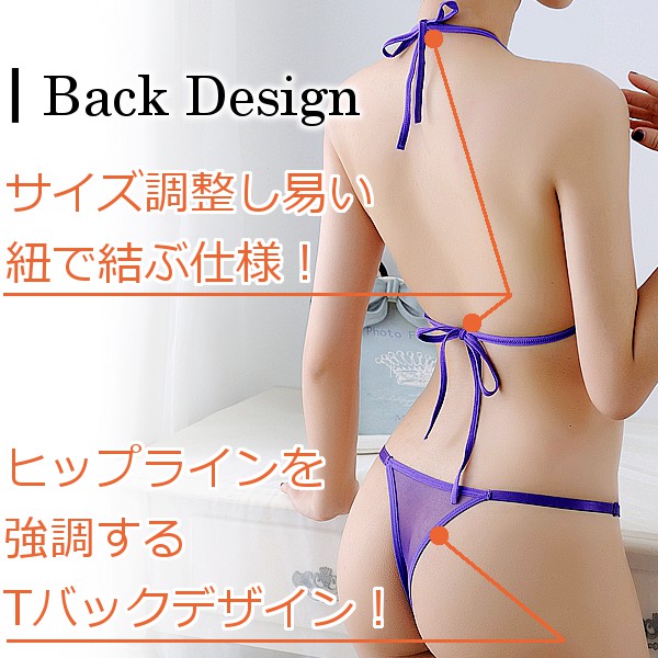 ショーツはサイズ調整機能付きのTバックデザイン。