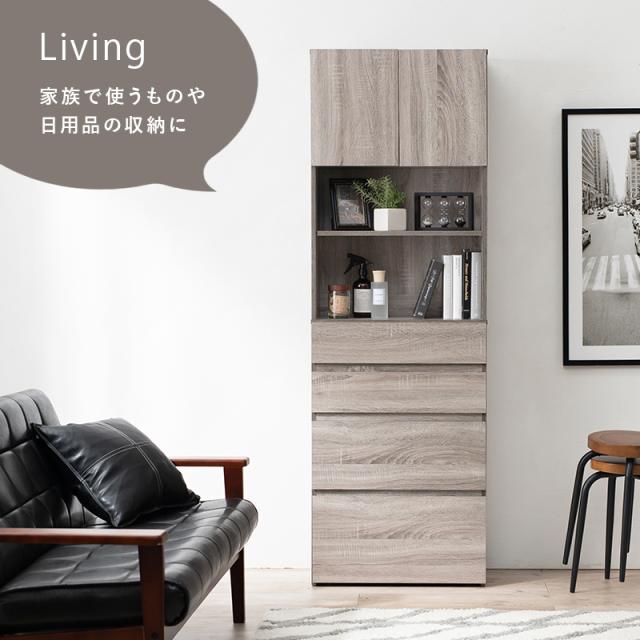【キーワード】 キッチンボード キッチンラック 食器棚 ランドリーラック ランドリーチェスト ハイタイプ スリム 幅60cm 60幅 木製 北欧 安い ナチュラル おすすめ キッチン収納 ランドリー収納 リビング収納 引き出し 扉付き オープンラック