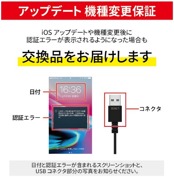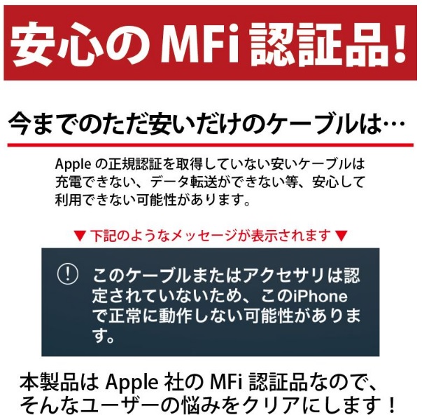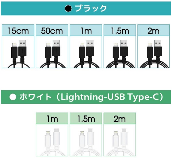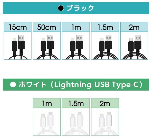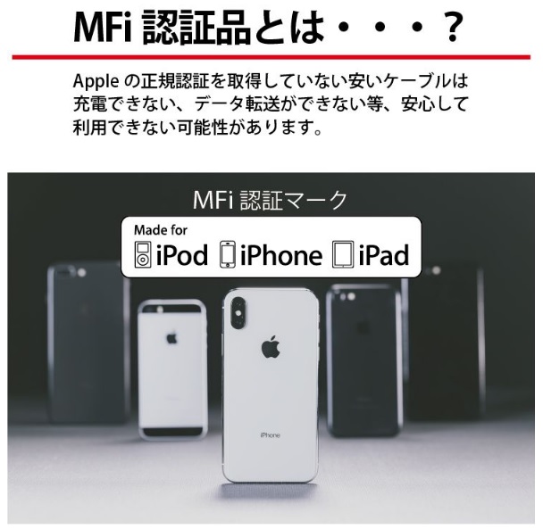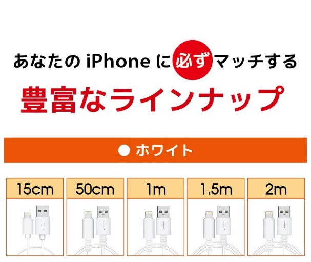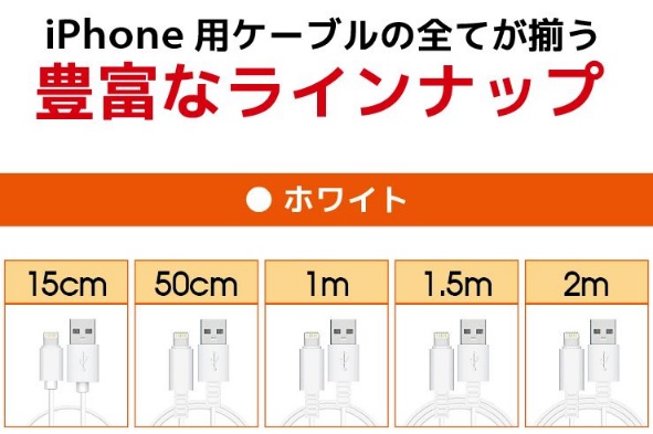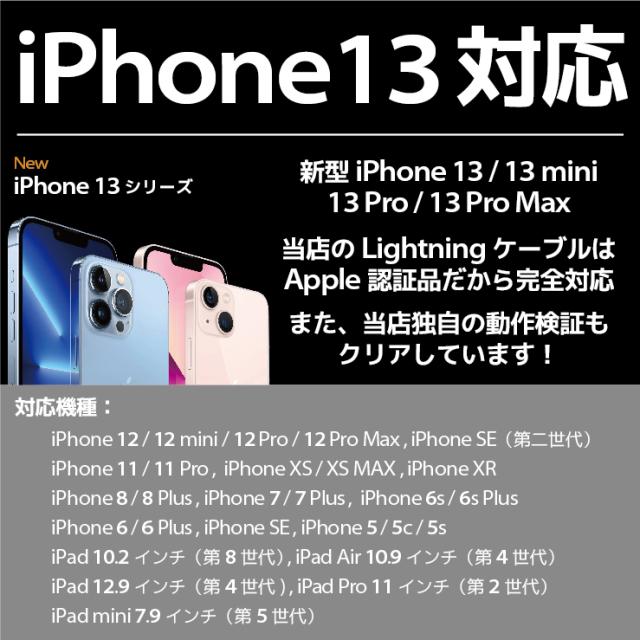対応機種 iPhone13 iPhone13mini iPhone13pro iPhone13promax iPhone12 iPhone12mini iPhone12Pro iPhone12Pro Max iPhone11 iPhone11Pro iPhone XS iPhone XS Max iPhone XR iPhoneX iPhone8 iPhone7 iPhone6s iPhone6 iPhone5s iPhone5 iPhone SE 他ライトニングコネクタを搭載したiPhone / iPadコネクタ形状 ライトニング(オス) - USB A(オス)カラー ホワイト(白) / ブラック(黒)ケーブル長 15cm / 50cm / 1.0m / 1.5m / 2.0m / 3.0m製品保証 お買い上げ日より1ヶ月間の無償保証備考 Apple(アップル)正規認証取得品※MFi認証品(Made for iPod / iPhone / iPad)※製品改良のため、コネクタ形状等仕様の一部を予告なく変更する場合があります。