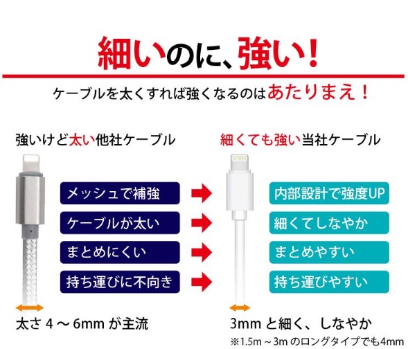 - 可もなく、不可もなく普通の充電ケーブルですね。でも、長くは使えそうです。