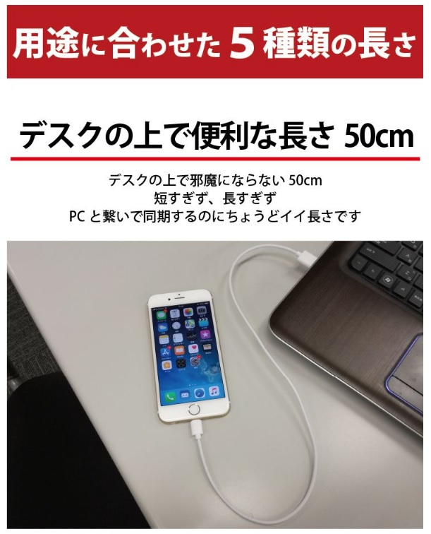 - タブレットとiPhoneをつないでiPhoneの充電をしたかったのですが使えなかった。 長さはちょうどよかったです。