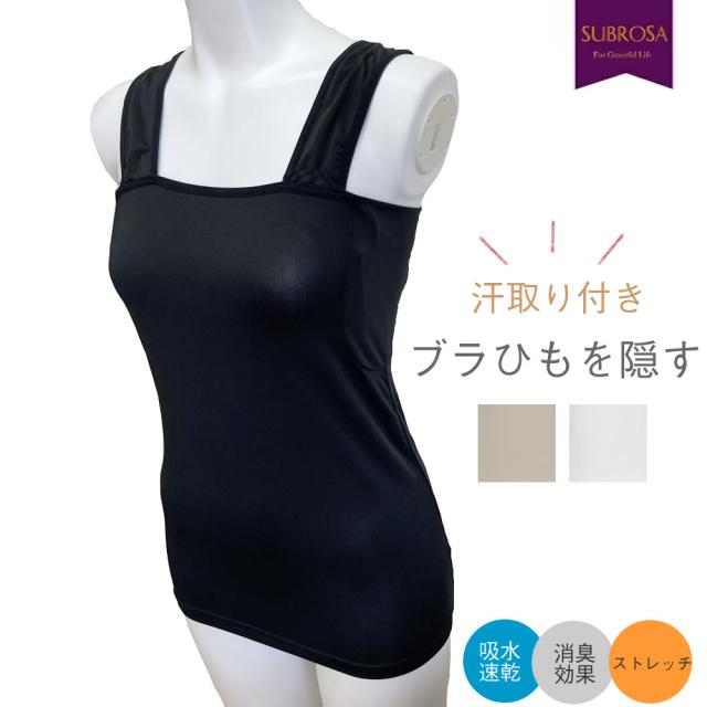 メール便送料無料 ブラ紐隠し 汗取りインナー タンクトップ インナー ブラ紐を隠せる ブラ紐 汗染み 汗取り 汗じみ防止 吸水速乾 消臭効果 ストレッチ 袖なし ノースリーブ インナーシャツ 肌着 無地 シンプル スクエアネック トップス レディース チラ見え防止