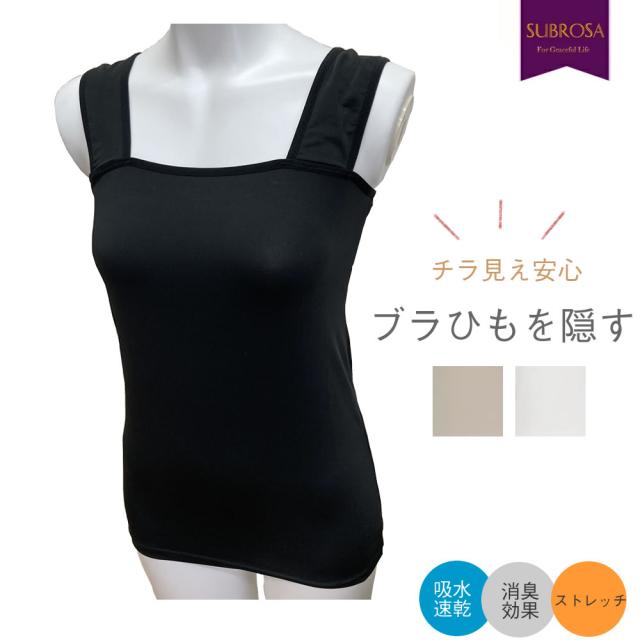 メール便送料無料 ブラ紐隠し シンプルタイプ タンクトップ インナー ブラ紐を隠せる ブラ紐 吸水速乾 消臭効果 ストレッチ 袖なし ノースリーブ インナーシャツ 肌着 無地 シンプル スクエアネック トップス レディース チラ見え防止 タンク ルームウェア 夏 ブラ紐見えない