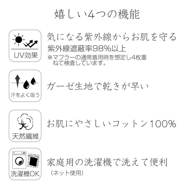 今治四季彩マフラー 綿100% UVカット タオルマフラー【約32x150cm】今治タオルブランド認定 オールシーズン ガーゼ 冷房対策 冷え対策 汗取り 汗ふき 日よけ 紫外線対策 襟巻 母の日 プレゼント 送料無料 春 夏 日本製 国産