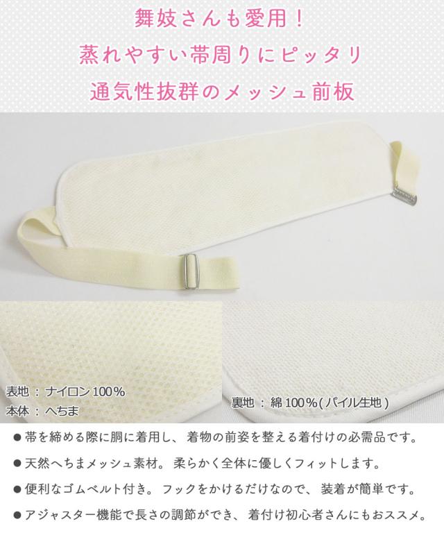 【1枚までメール便送料無料】しゃれびあん 天然へちま 前板 舞妓さんも愛用 通気性抜群 帯 49cm 長尺用 ベルト付前板 涼しい 着脱簡単 着付け小物 パイル生地 ナイロン レディース 女性 着付け 初心者 着物 成人式 振袖 留袖 訪問着 袴 浴衣