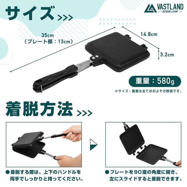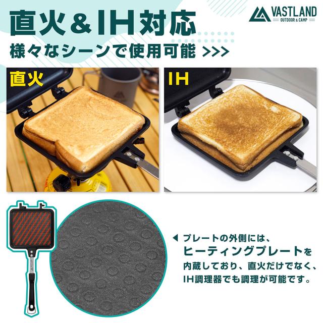 VASTLAND(ヴァストランド) ホットサンドメーカー シングル 直火 IH対応 着脱式 フッ素樹脂加工
