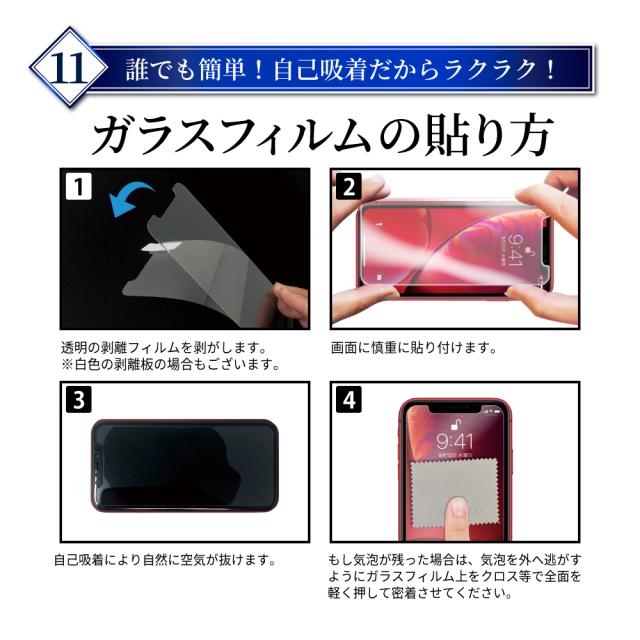- 家族のスマホのために購入しました。装着の動画が分かりやすく、埃とりのシールまであるのは有り難かったです。