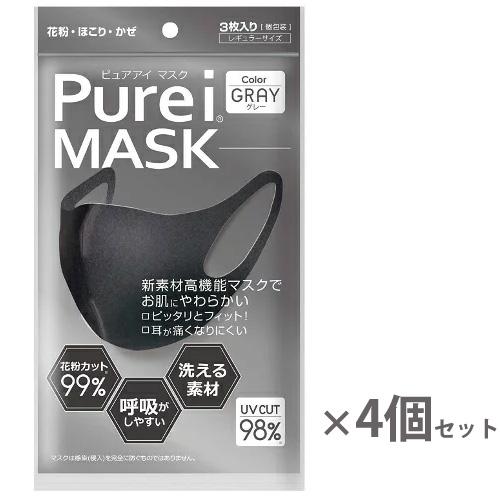 【メール便or宅配便 送料無料】【即日発送(土日祝除く・13:00までのご注文)】ピュアアイマスク グレー レギュラーサイズ 3枚入り 4個セット