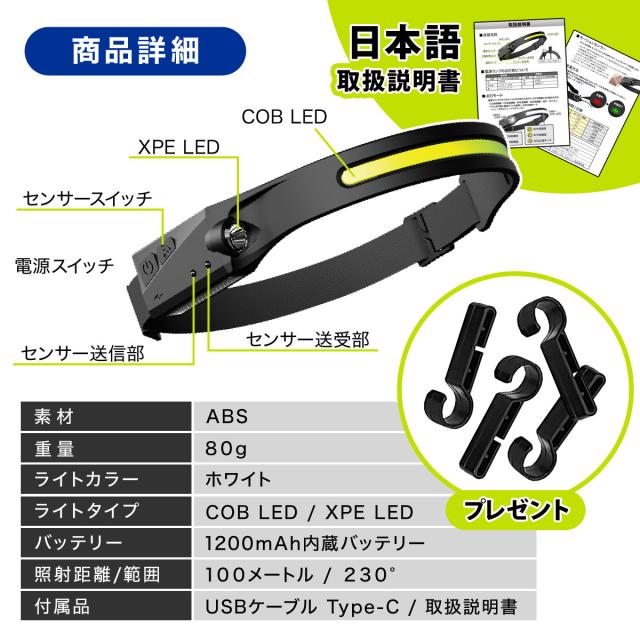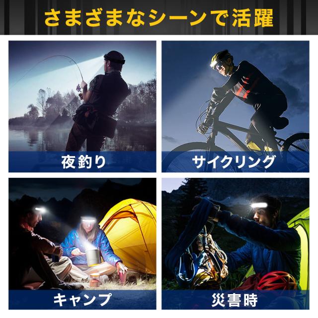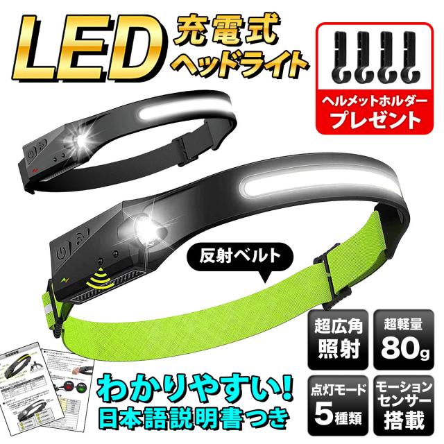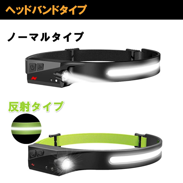 ヘッドライト 充電式 LED COB 超広角 ヘッドランプ キャンプ 明るい 軽量 モーションセンサー タッチレス ハンズフリー 超強力 作業灯 釣り アウトドア