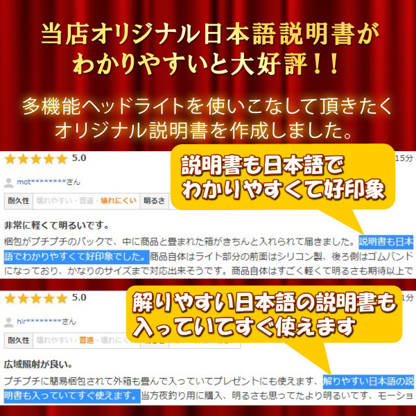 - 明るくて扱いやすいです。 充電方法もUSBなので、簡単に充電できるのがいい。