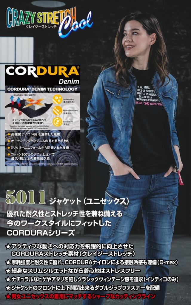 バートル デニムジャケット カーゴパンツ 上下セット 5011/5012 コーデュラ メンズ レディース ジーンズ ストレッチ ヴィンテージ加工 春夏 BURTLE 作業服