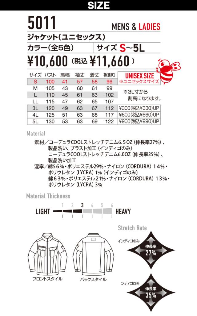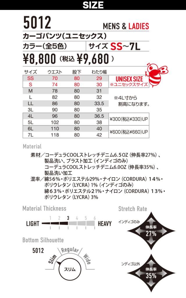 バートル ジャケット5011(ユニセックス)カーゴパンツ5012(ユニセックス)の上下セット