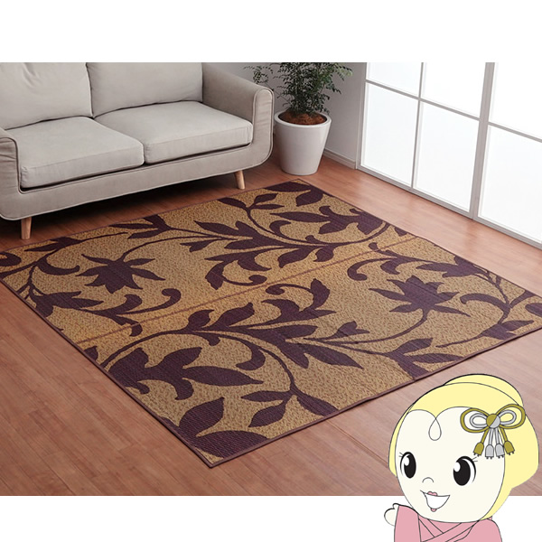 ラグ 正方形 い草 リーフ 自然素材 抗菌防臭 滑り止め不織布 イケヒコ ワイン IKE-8501329