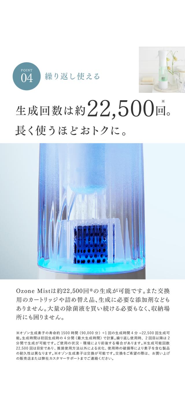オゾン水生成器 Ozone Mist は、約22,500回※の除菌水の生成が可能。