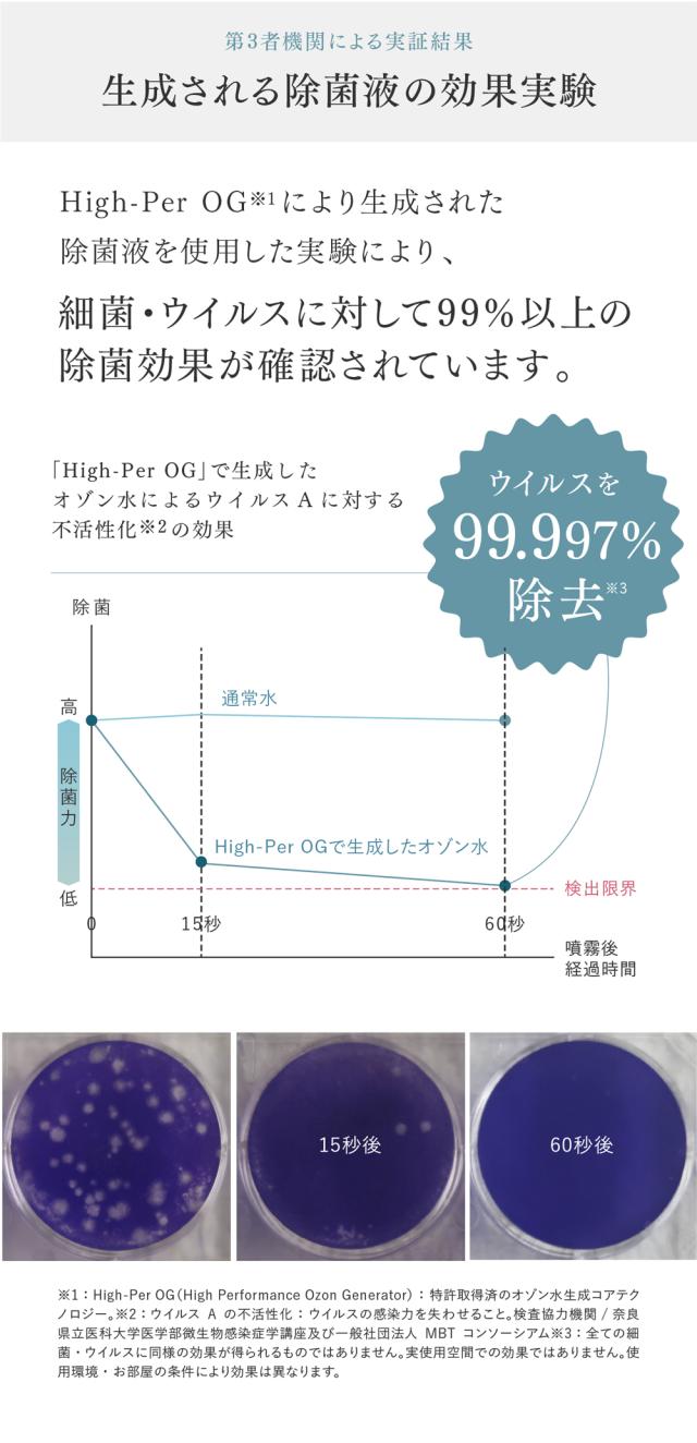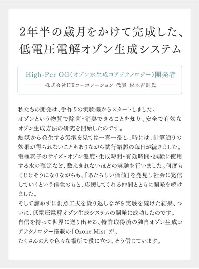 ※High-Per OG(High Performance Ozone Generator) : 特許取得済のオゾン水生成コアテクノロジー